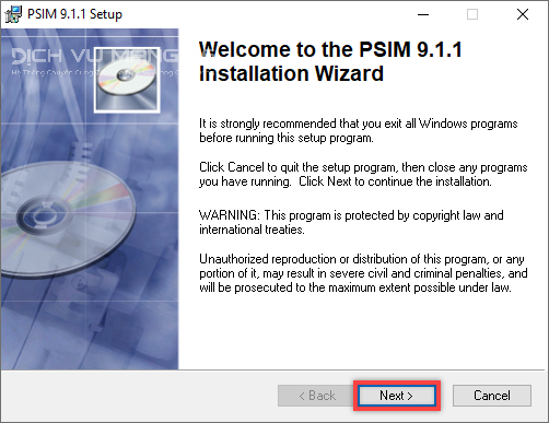 Bước 3: Bạn mở thư mục PsimBook9.1.1 và chạy file psim9.1.1_32_setup.exe để tiến hành cài đặt phần mềm. Một của sổ hiện ra, bạn nhấp vào chữ Next để sang bước tiếp theo.