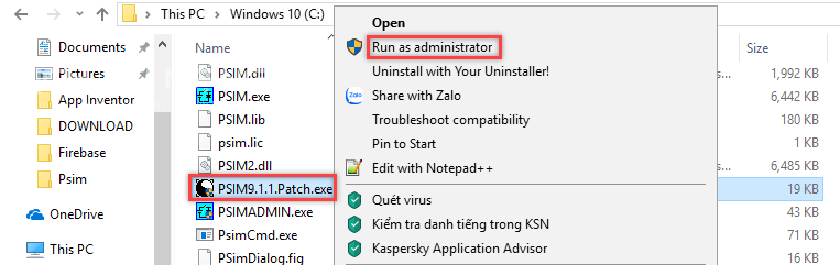 Bước 11: Chạy file PSIM9.1.1.Patch.exe dưới quyền admin (Run as administrator) như hình dưới.